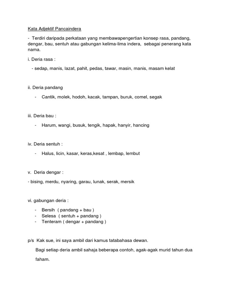 Pancaindera pendengaran Contoh. Kata Nama yang baharu iaitu Kata Adjektif atau.
